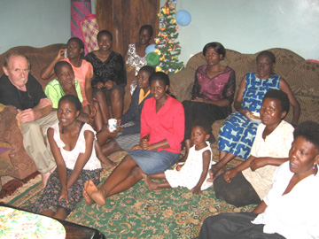 Christmas Eve in Nansaana: (on couches) Tom, Henry, Maureen, Lydia, Sanyo, Maureen, Irene; (sitting on the floor) Lydia
